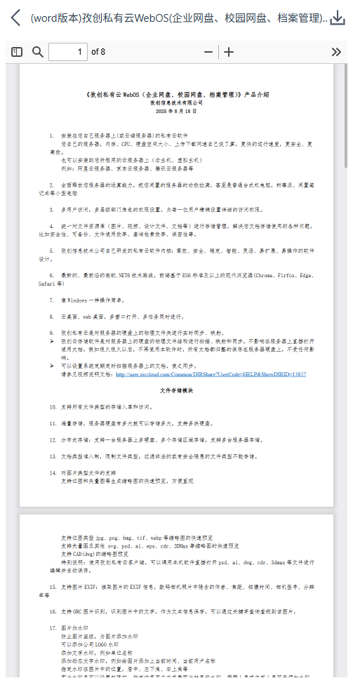 | 孜创私有云只是对服务器硬盘文件的文件名、文件路径、文件大小等信息的扫描录入,并不影响您服务器的硬盘文件的直接打开 |